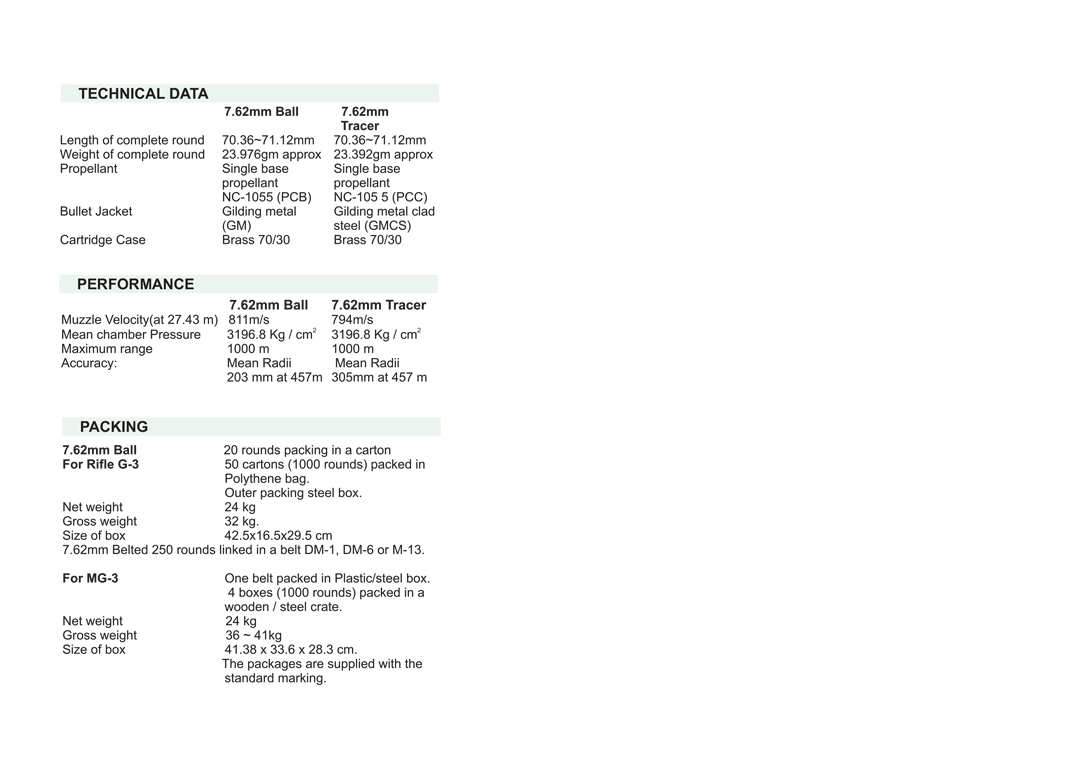It is available in two variants: I. 7.62x51 mm Ball ii. 7.62x51mm Tracer Cartridge 7.62x51 mm is used in any NATO Standard 7.62 mm caliber weapons, in single shot or burst in diverse field conditions