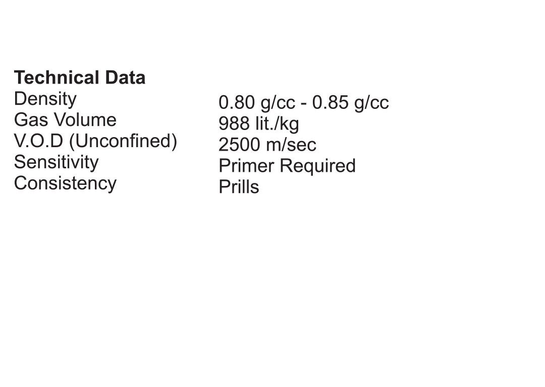 Wapril is a mixture of Ammonium Nitrate and fuel oil having a special sensitizer designed to give optimum blasting performance. Wapril is a low cost explosive which is extensively employed as column charge in all types of rock blasting operations and is particularly used as main charge (with primer) in large diameter hole blasting.