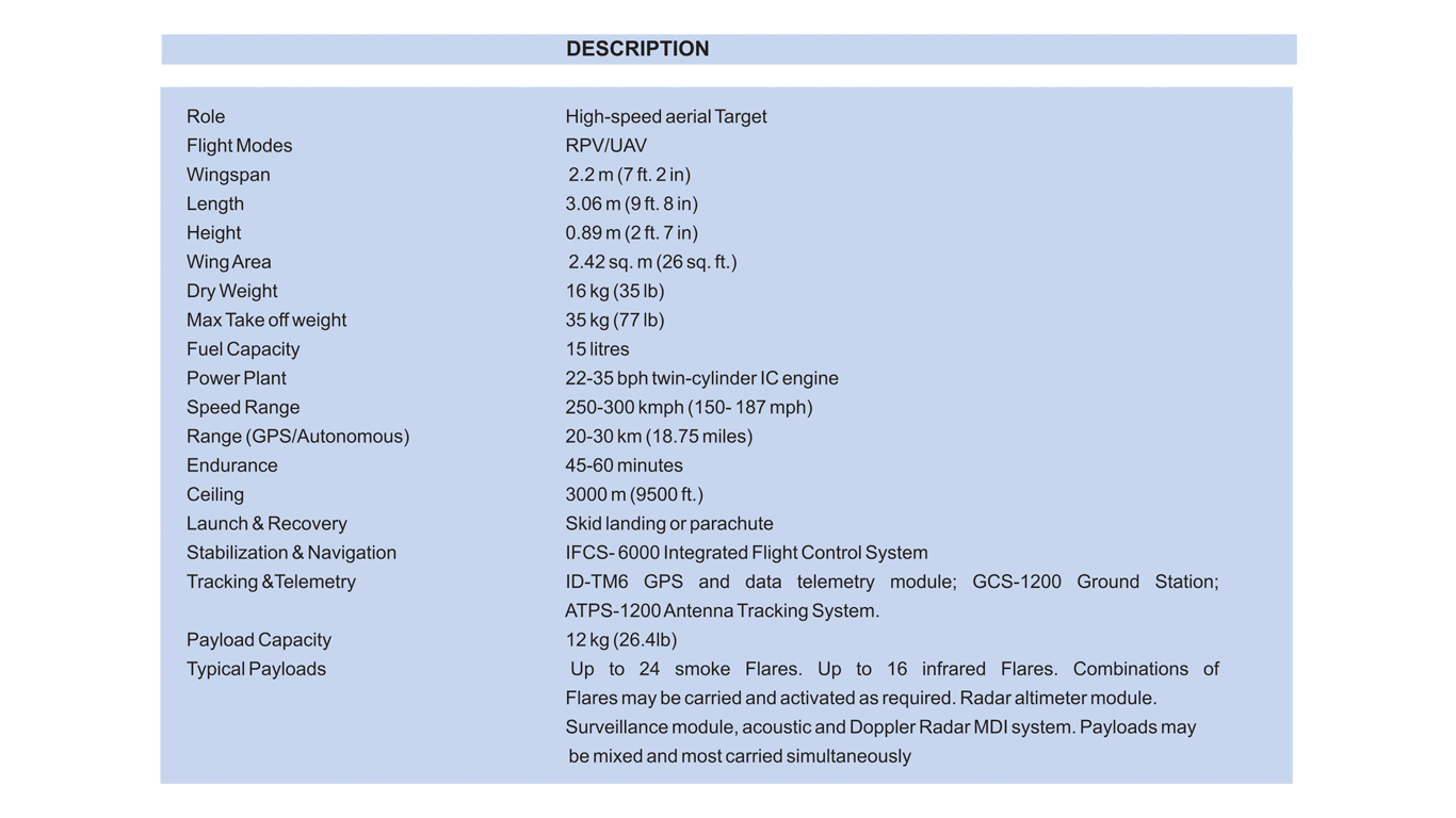 Up to 24 smoke Flares. Up to 16 infrared Flares. Combinations of Flares may be carried and activated as required. Radar altimeter module. Surveillance module, acoustic and Doppler Radar MDI system. Payloads may be mixed and most carried simultaneously