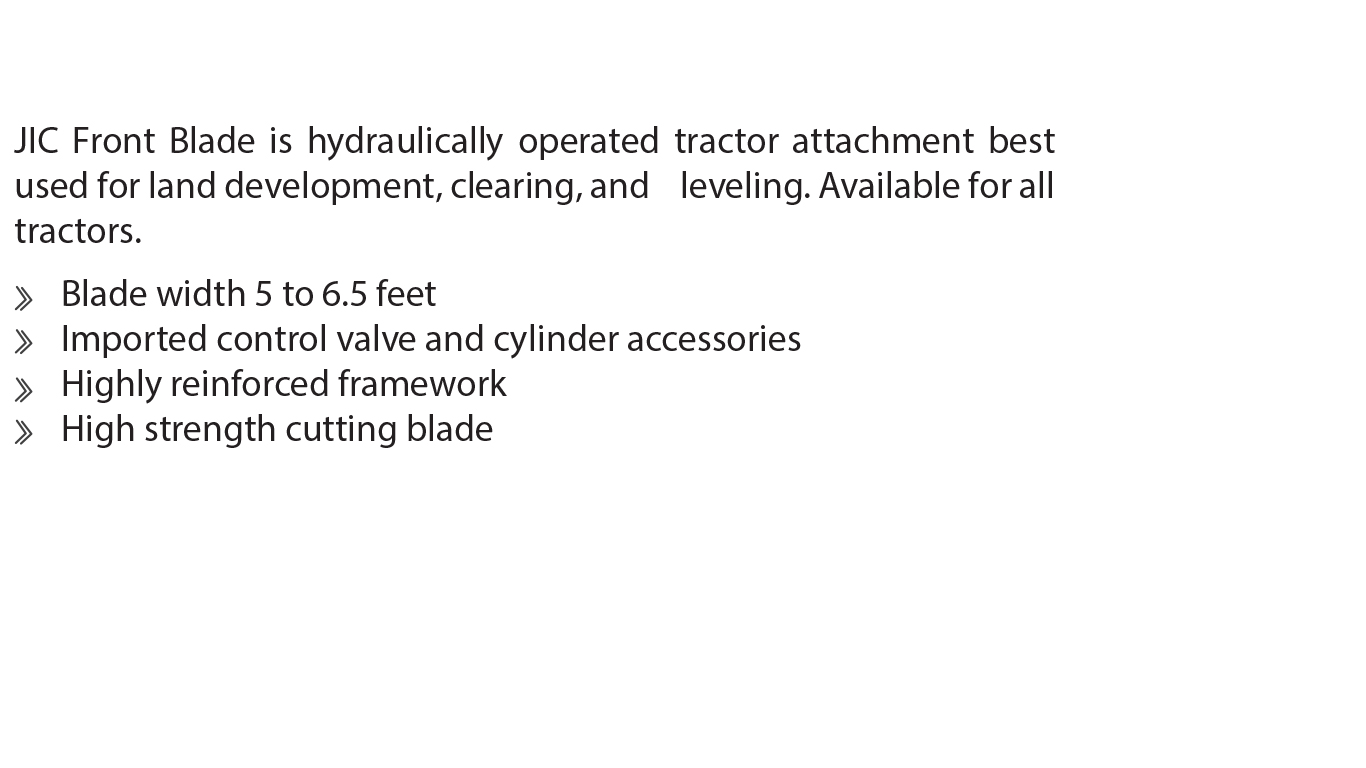 AC Front Blade is hydraulically operated tractor attachment best used for land development, clearing, and leveling. Available for all tractors.
