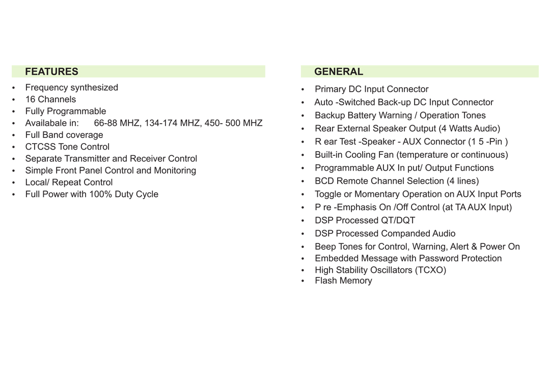 Fully Programmable Microprocessor controlled high performance Base stationfRepeater with comprehensive local control facilities and internal duplexer option.